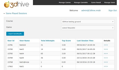 HiveHealth doesn't end at the gaming experience. HiveHealth smartly collects information about each student's performance in-game, so you can review and assess indivudial user's gameplay. It also provides options to update games and other neede user management.